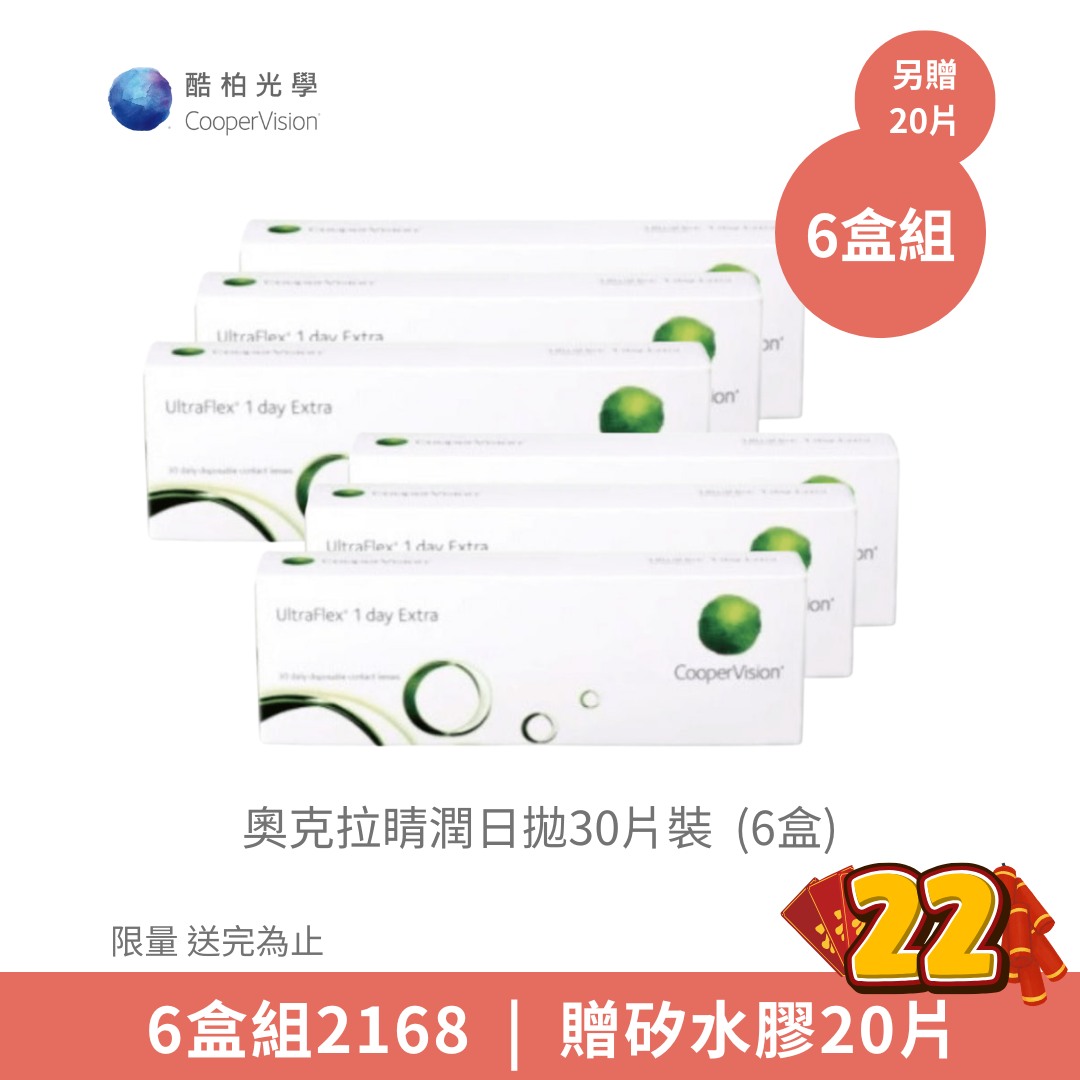 酷柏CooperVision奧克拉睛潤日拋30片裝(6盒組) _●贈片-矽水膠20片 (限量送完為止)NT$ 2,520NT$ 2,168 -
