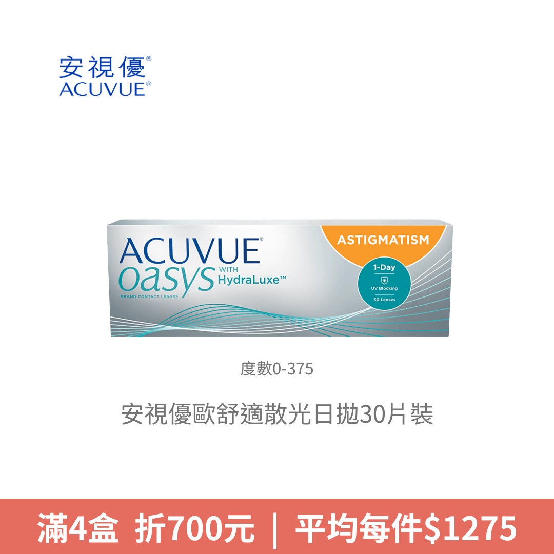 嬌生安視優ACUVUE安視優歐舒適散光日拋30片裝 (度數400-900)NT$ 1,500NT$ 1,450 -