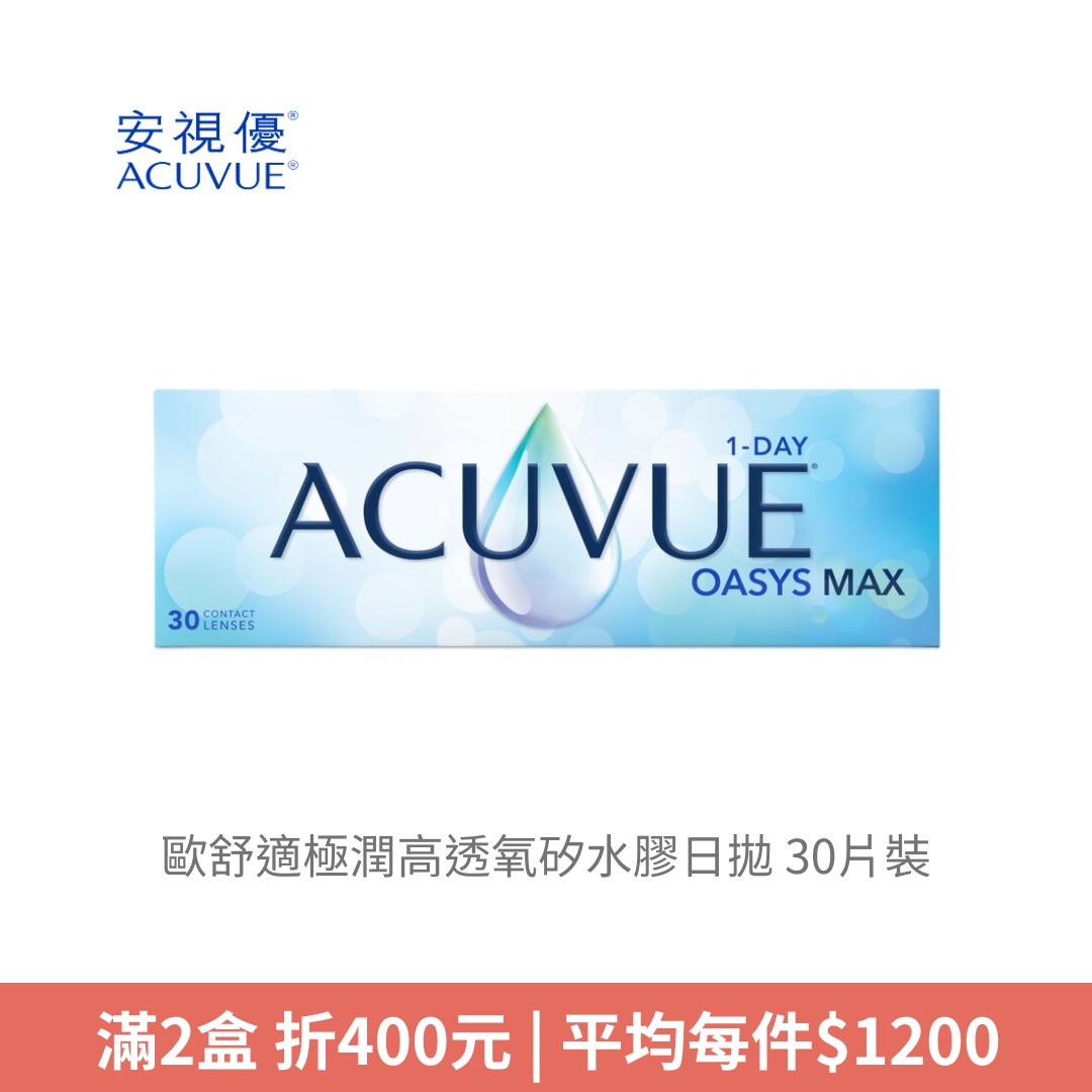 嬌生安視優ACUVUE歐舒適極潤高透氧矽水膠日拋 30片裝NT$ 1,450NT$ 1,400 -