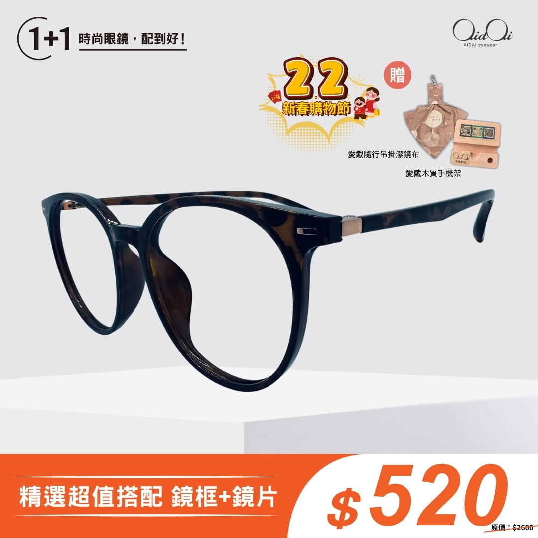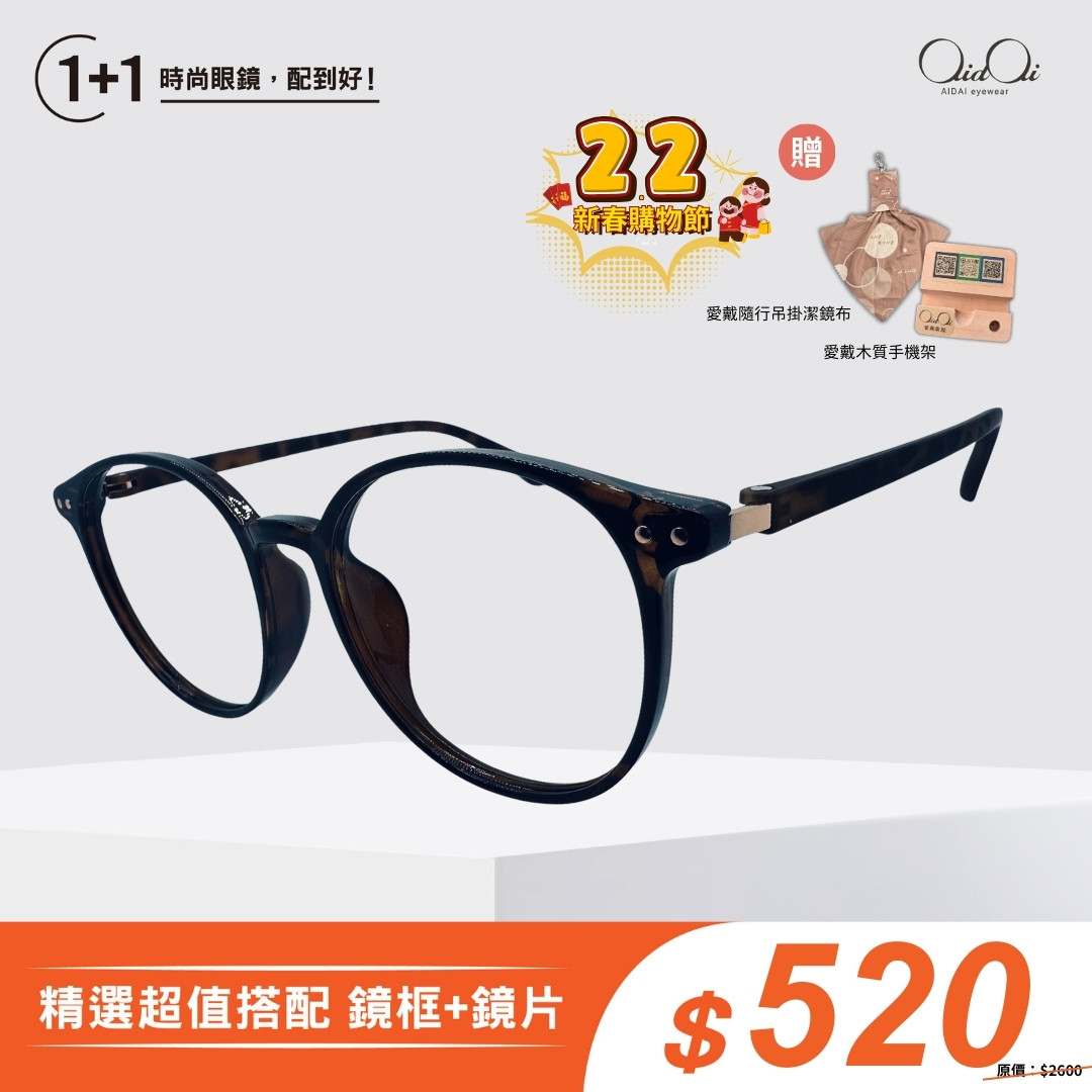 AIDAI深棕玳瑁紋圓膠框眼鏡 TR1308-C26NT$ 2,600NT$ 520 -