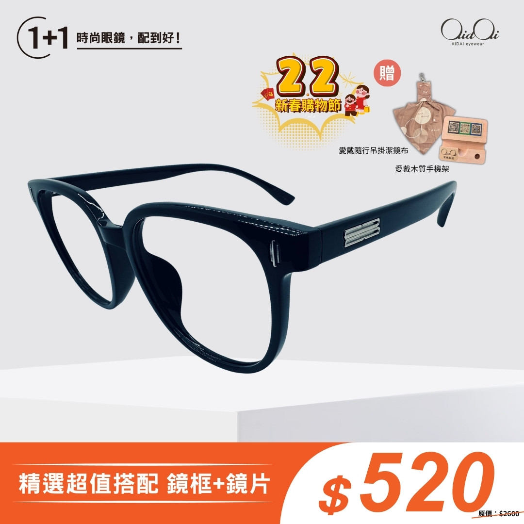 AIDAI經典曜黑膠質眼鏡 JM22334-C1NT$ 2,600NT$ 520 -