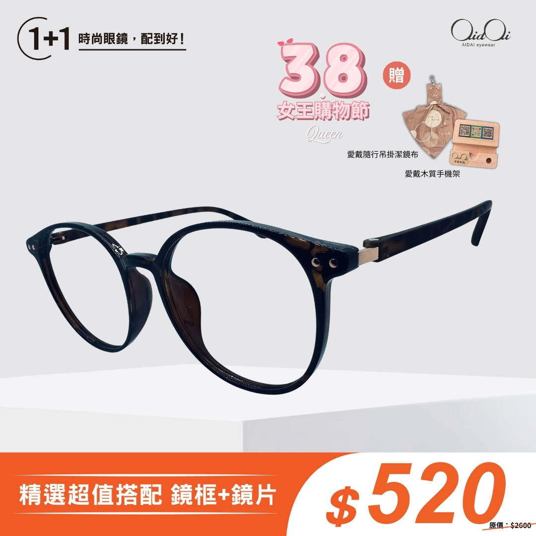 AIDAI深棕玳瑁紋圓膠框眼鏡 TR1308-C26NT$ 2,600NT$ 520 -