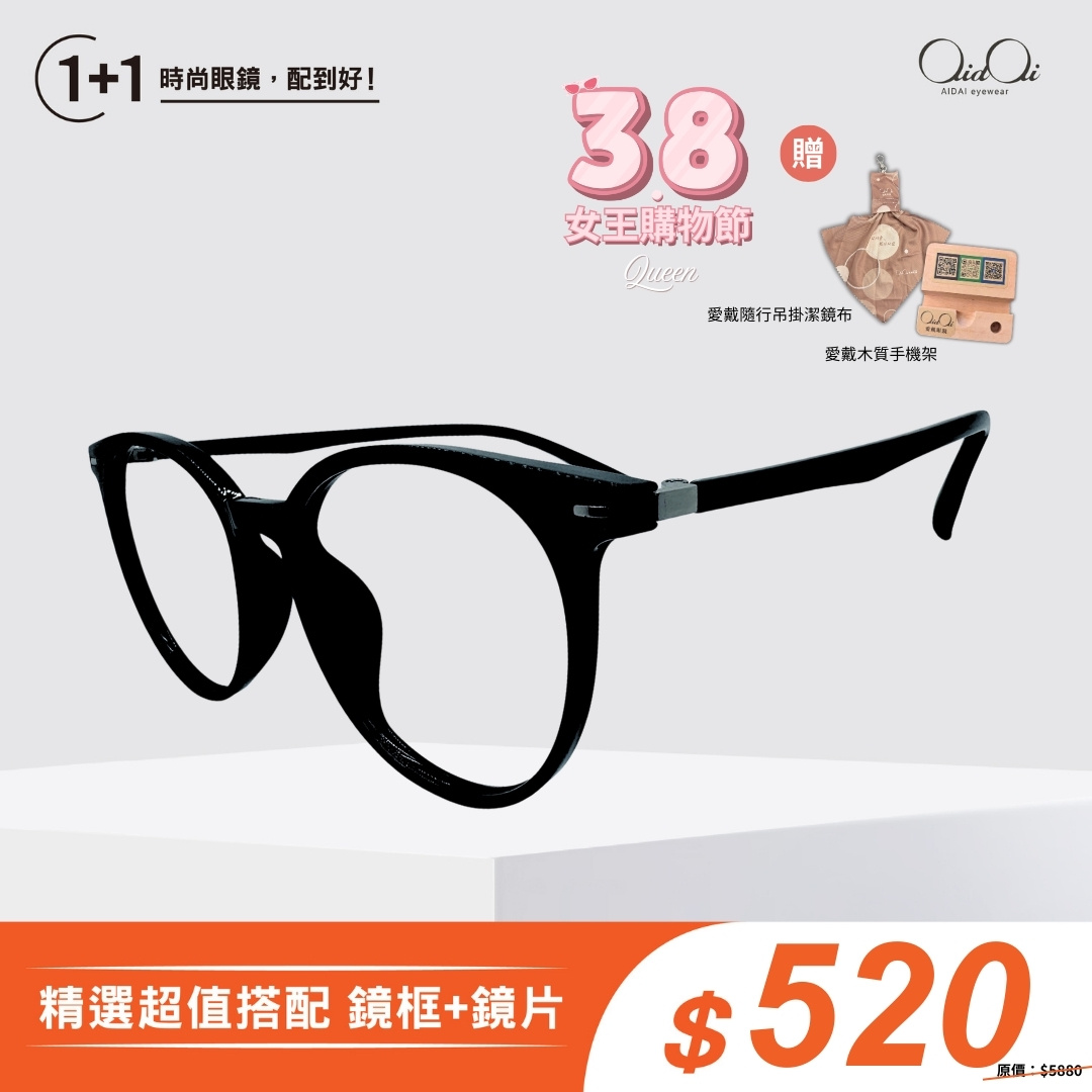 AIDAI曜黑圓膠框眼鏡 TR1347 C1黑曜時尚NT$ 2,600NT$ 520 -
