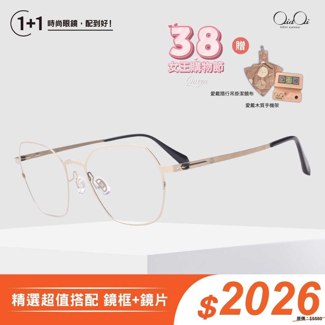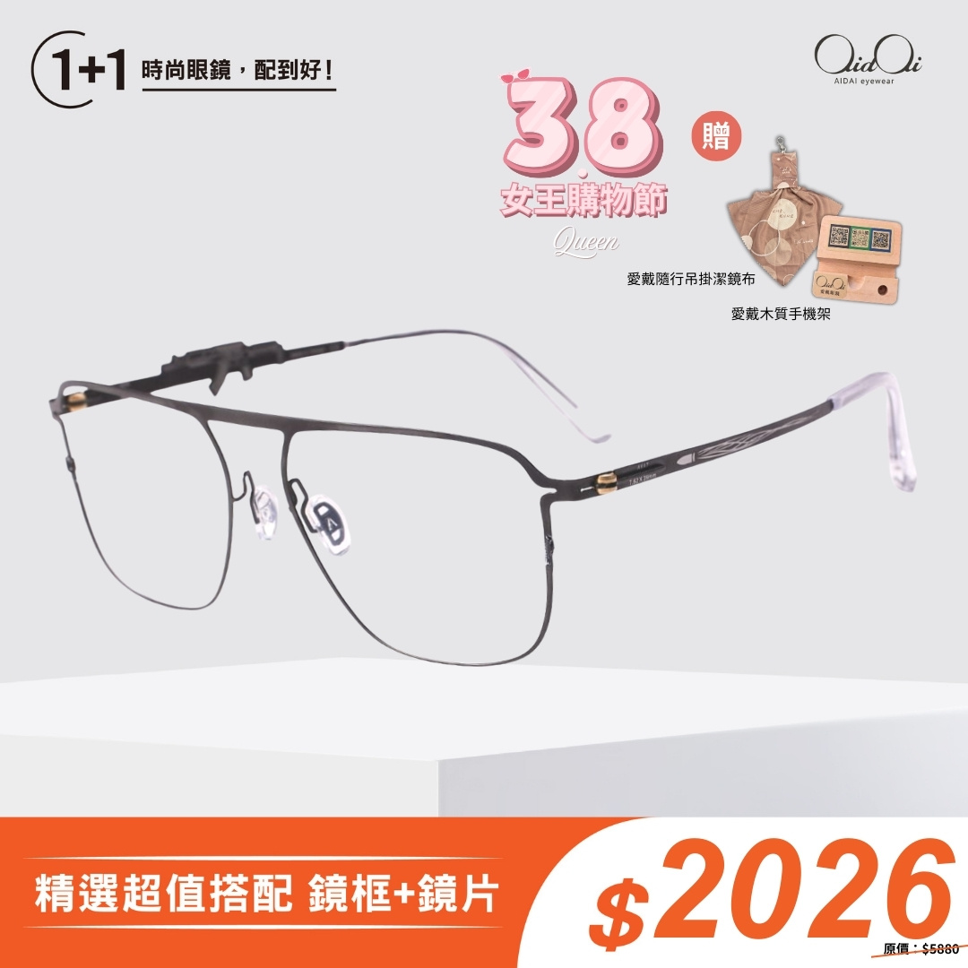 AIDAIClover 優雅幸運輕薄鏡框 | 輕鋼舒適光學眼鏡NT$ 4,980NT$ 2,026 -