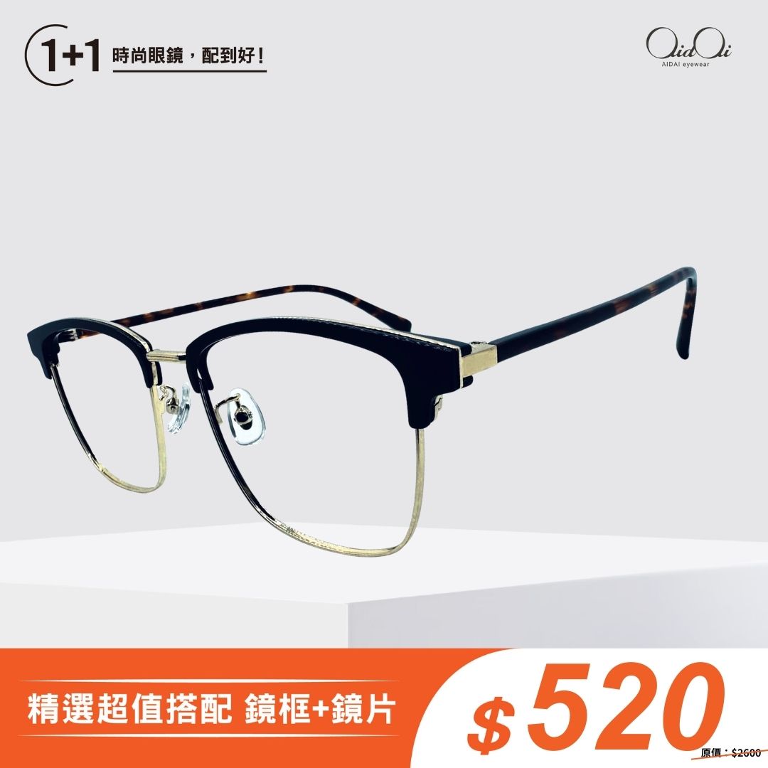 AIDAI琥光玳瑁膠框眼鏡 TR1347-C26 黑玳NT$ 2,600NT$ 520 -