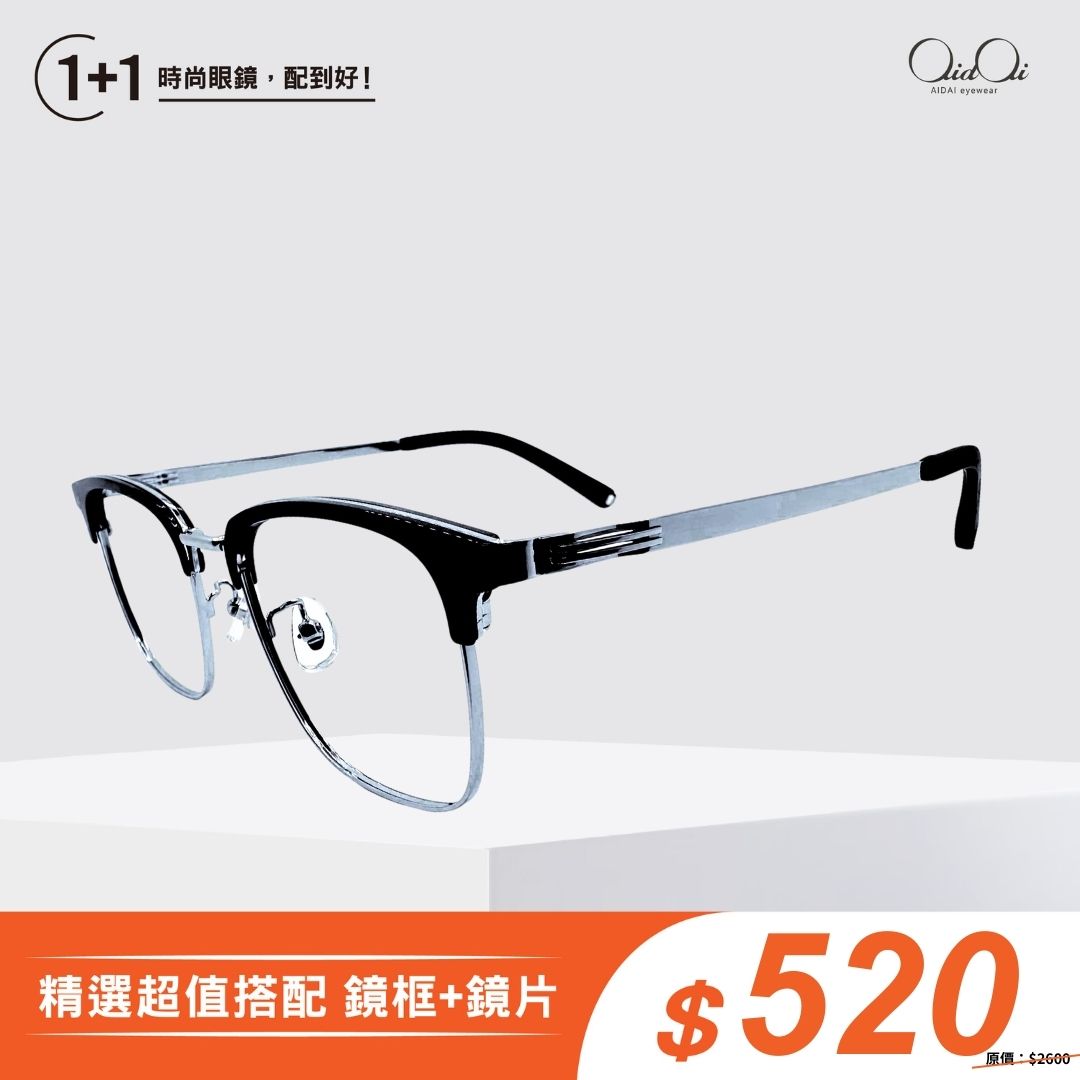 AIDAI輕奢黑銀眉型眼鏡 71037-C13NT$ 2,600NT$ 520 -