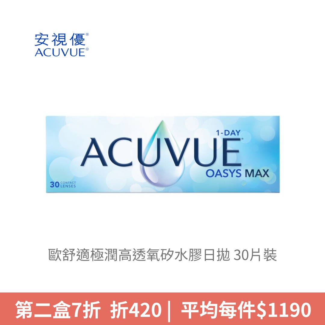 嬌生安視優ACUVUE歐舒適極潤高透氧矽水膠日拋 30片裝NT$ 1,450NT$ 1,400 -