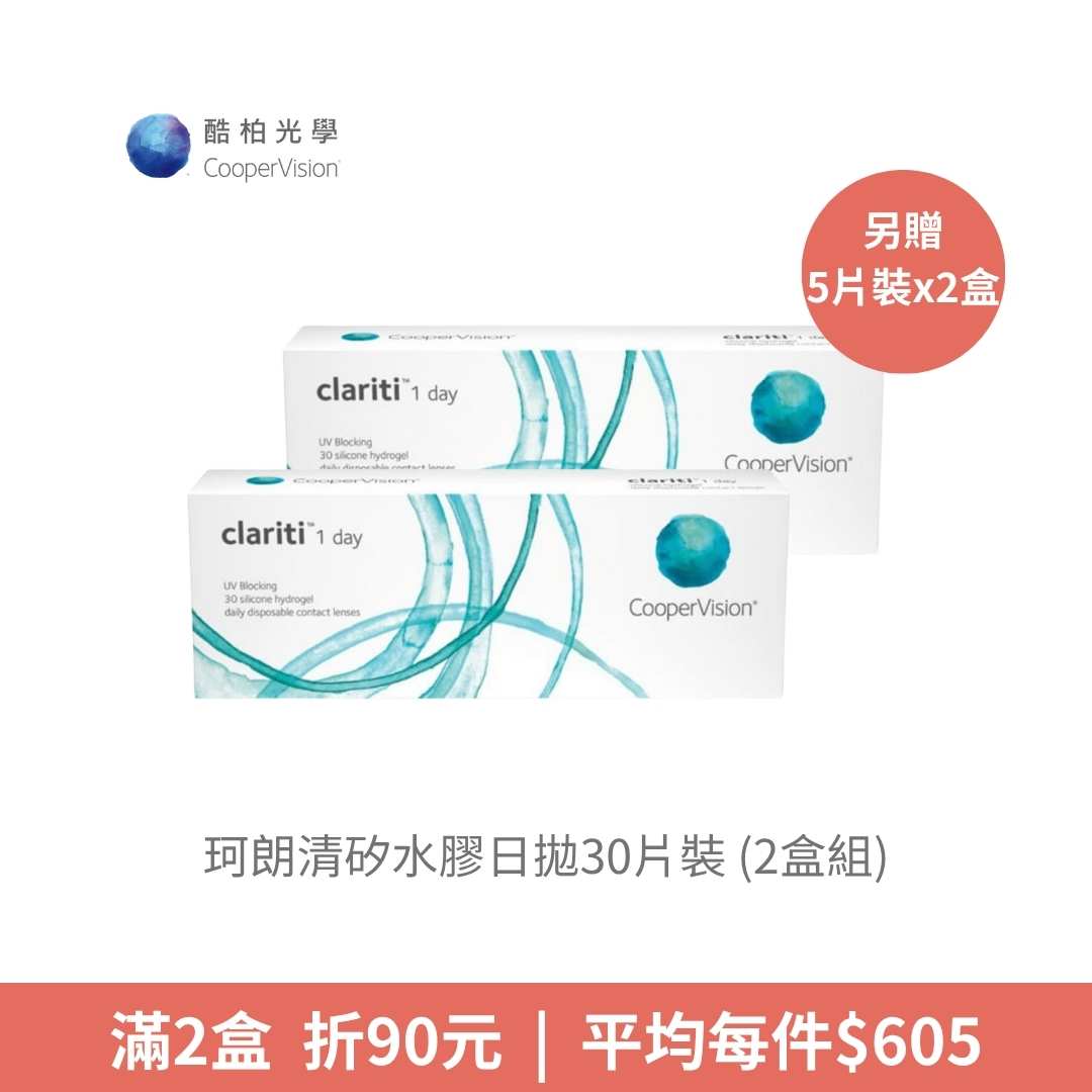 酷柏CooperVision珂朗清矽水膠日拋30片裝(2盒) _贈2盒5片裝 (限量 送完為止)NT$ 1,300NT$ 1,210 -