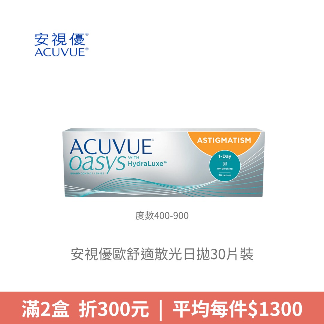 嬌生安視優ACUVUE安視優歐舒適散光日拋30片裝 (度數400-900)NT$ 1,500NT$ 1,450 -