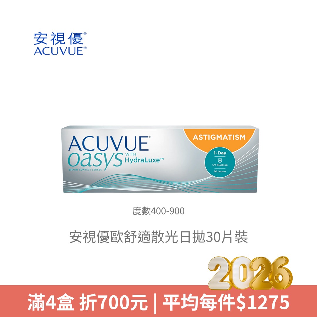 嬌生安視優ACUVUE安視優歐舒適散光日拋30片裝 (度數400-900)NT$ 1,500NT$ 1,450 -