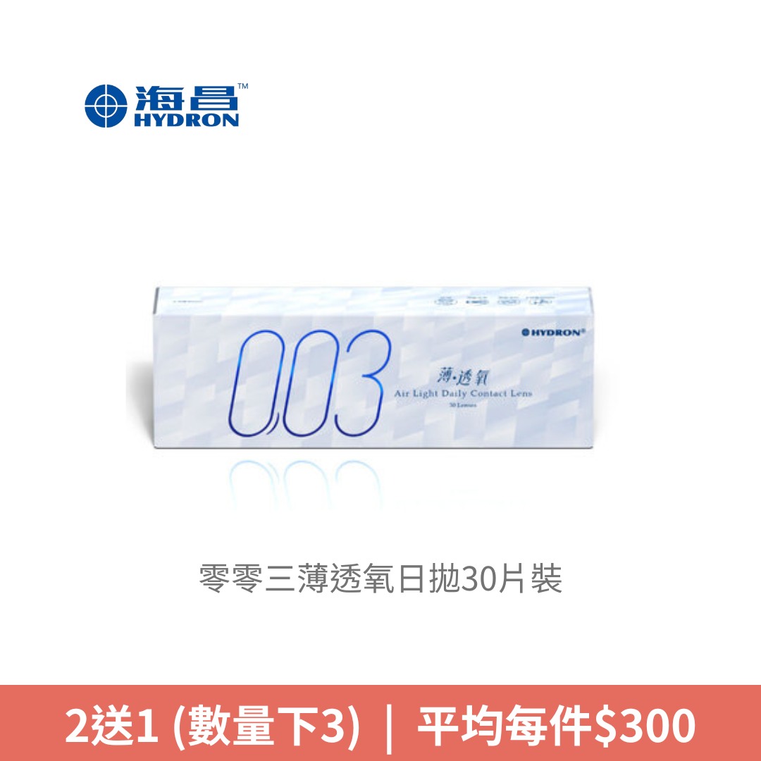 海昌Hydron零零三薄透氧日拋30片裝NT$ 450NT$ 435 -