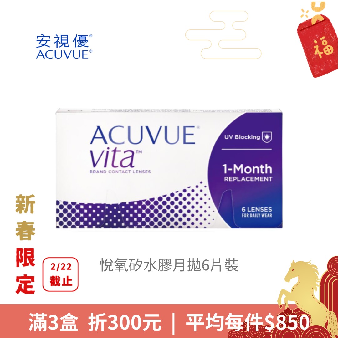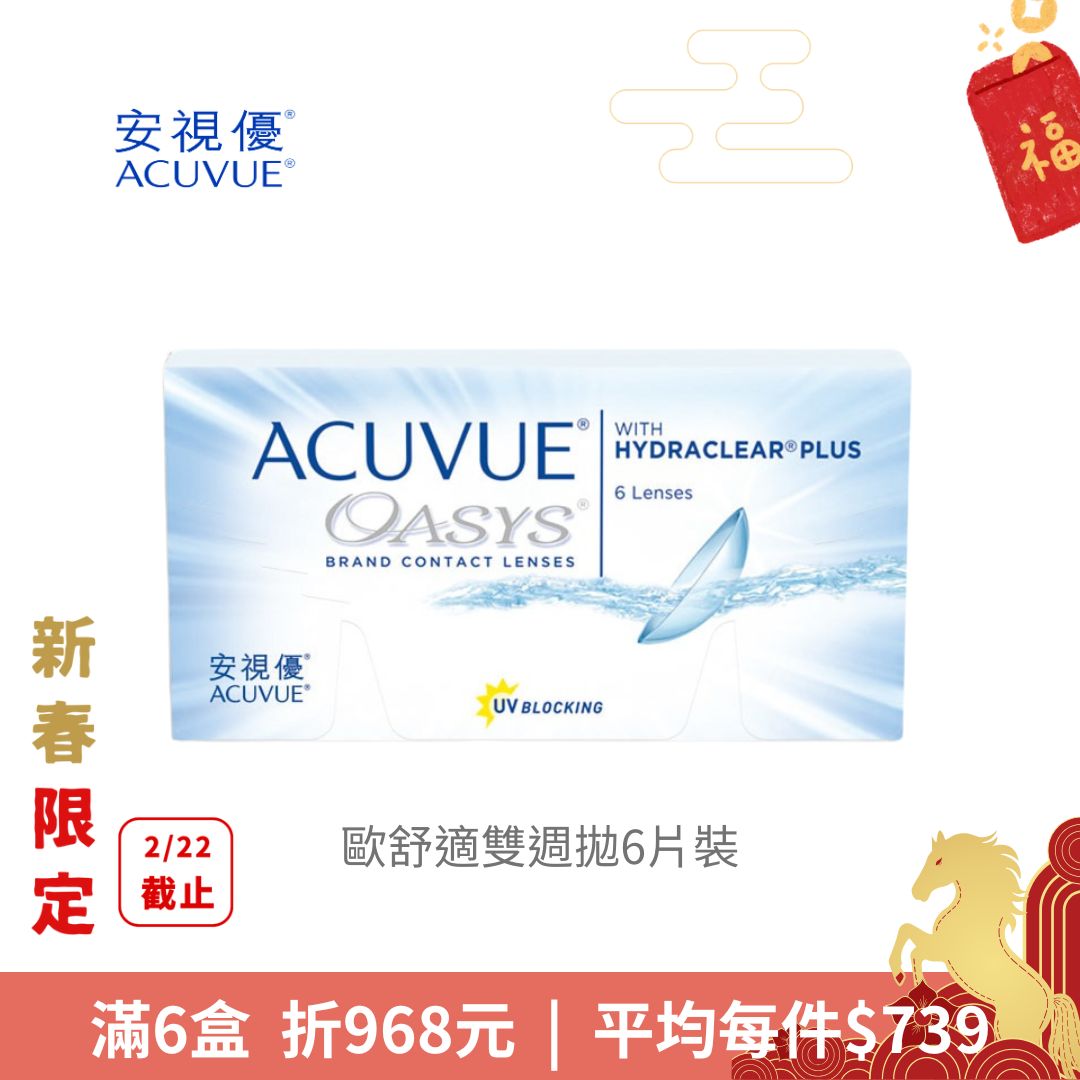 嬌生安視優ACUVUE嬌生安視優悅氧矽水膠月拋 6片裝_金馬新春特惠NT$ 1,000NT$ 950 -