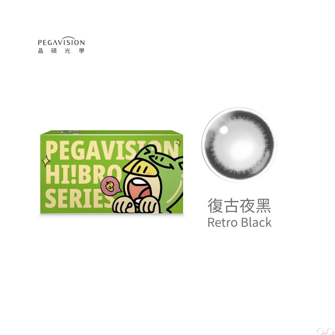 Pegavision晶碩 HI BRO 彩色月拋2片裝-復古夜黑Retro Black