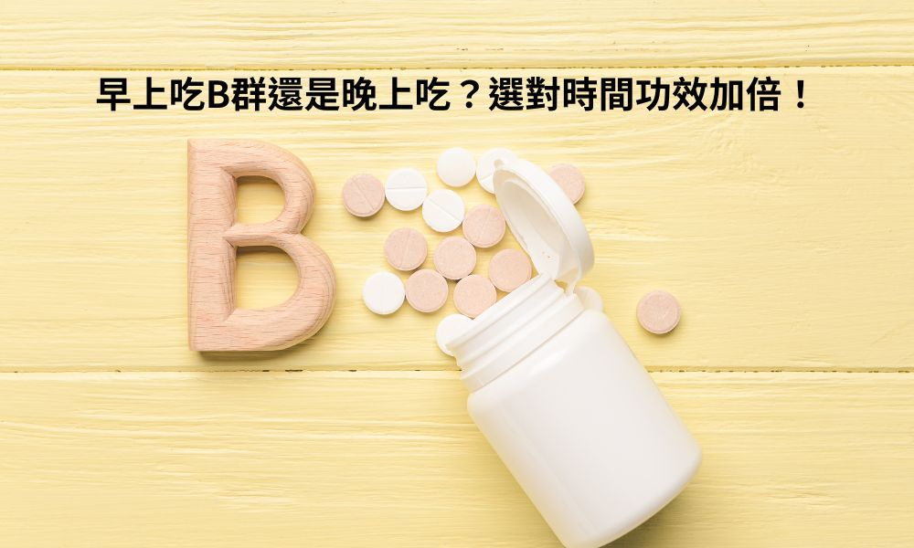 2024-09-13早上吃B群還是晚上吃?選對時間功效加倍!專家建議這個時間點!了解B群維生素的全面功效及對現代人健康的重要性!發現最佳服用時間、如何選擇早上或晚上補充,並深入解析B群的副作用及注意事項,幫助你提升精力、減少疲勞、穩定情緒。 -