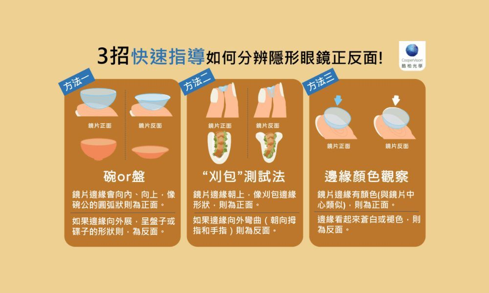 2024-05-31隱形眼鏡如何快速分辨正反面?只要知道3招就可以了無論是新手還是有經驗的隱形眼鏡使用者,有時候都會碰到一個棘手的問題:如何正確辨認隱形眼鏡的正反面?如果沒有正確的辨認方法,您可能會戴反隱形眼鏡,導致不舒適或視力模糊。在這篇文章中,我將與您分享一些簡單而有效的技巧,幫助您準確判斷隱形眼鏡的正反面。 -